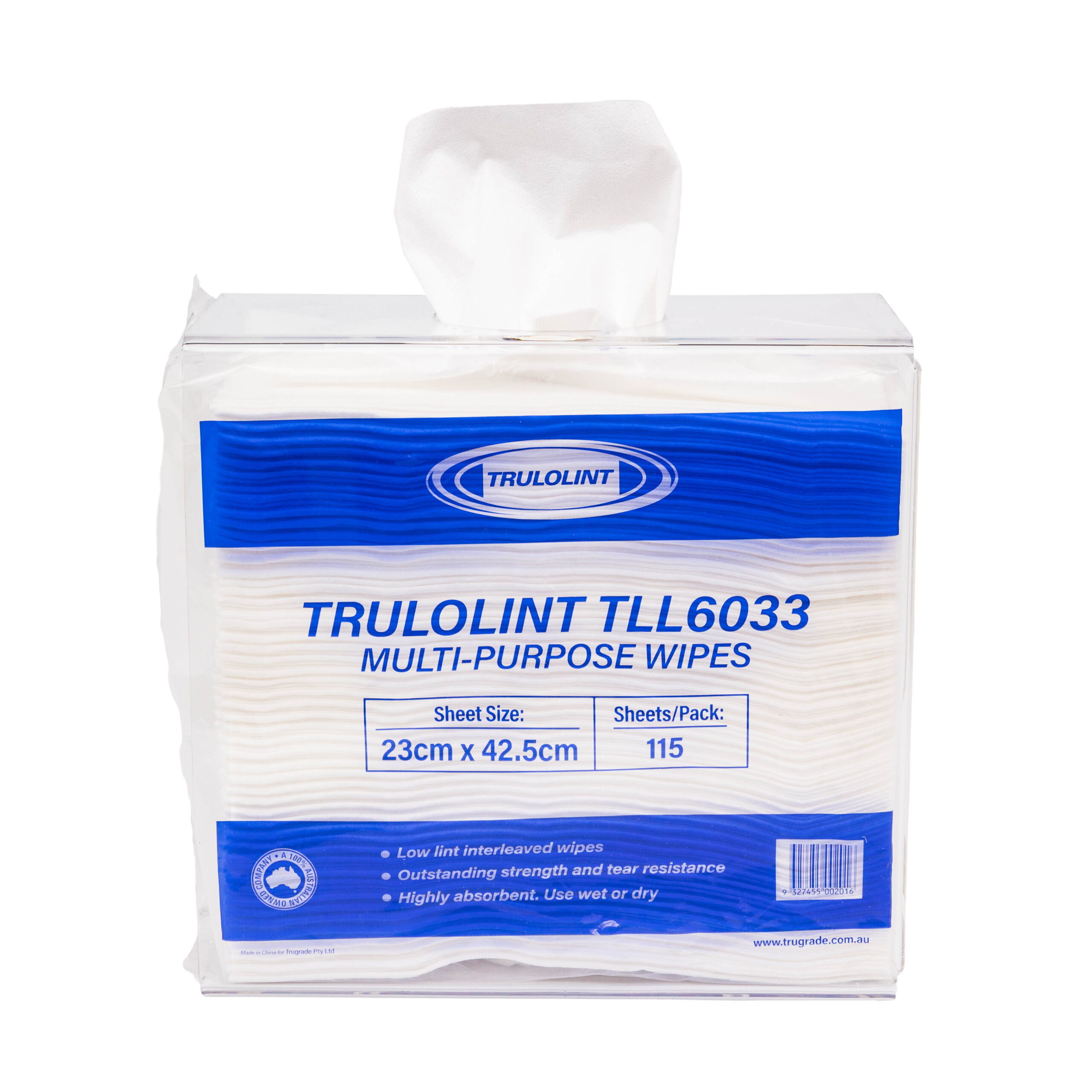 Trulolint 60 series are versatile wipers designed specifically for general cleaning tasks. Durable, superior strength, absorbent, hygienic and ideal for use for wiping surfaces, absorbing liquid spills, removal of oil, debris as well as polishing glass and stainless steel. Able to be used wet or dry. Suited to dispenser DISPTLL6033.