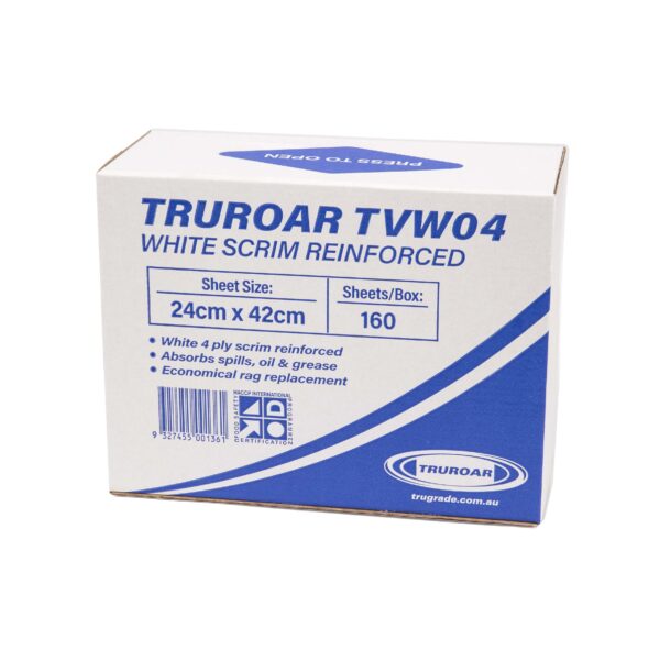 Truroar white sheet wipe is a general-purpose wipe that effectively absorbs minor spills, including fine oil and grease. Commonly referred to as ROAR. This large wipe is made with 4-ply tissue and are reinforced with scrim netting.
